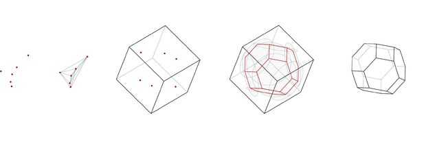 Utilizamos saltamontes para generar una serie de formas de poliedro. En primer lugar, creamos algunos puntos al azar y dejarlos distribuidos uniformemente en la superficie de una esfera. En segundo lugar utilizamos estos puntos como centros de creación de una cúpula de facetas y evaluar las líneas entre el centro y los vértices de la cúpula en un parámetro especificado. A continuación, trace círculos en los puntos evaluados y sacan a los cilindros. Finalmente realizamos una diferencia sólida en la cúpula y estos cilindros para conseguir una forma de poliedro.