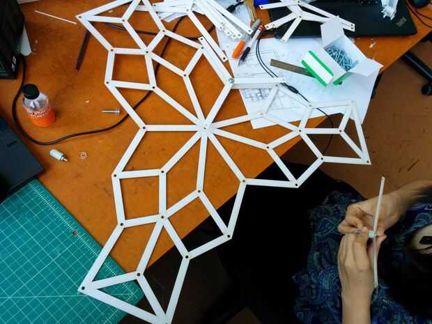 El material que utilizamos para este modelo es cartón y utilizamos láser de corte para fabricarlo. La capa inferior se corta como una pieza entera, y módulos de capa superior se unen en ella doblar a la forma predeterminada.