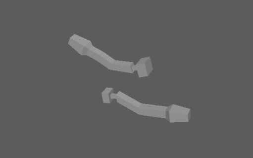 Para los brazos, diseñamos una pieza que será duplicada y reflejada para crear una izquierda y un brazo derecho. Comience con un polígono rectangular largo y delgado. Luego usaremos la herramienta de bucle insertar bordes para crear la otra sección del brazo. Uno un fin, crear un gran cubo conectado a un rectángulo de aproximadamente la mitad del rectángulo comenzó con. La pieza pequeña se sentará dentro de los agujeros que se crearon en la parte superior del cuerpo, y las piezas grandes bloqueará los brazos dentro del cuerpo para que no se caigan hacia fuera. Utilice la herramienta de lazo de borde en el medio del brazo para crear un borde que podemos doblar en el codo. En el extremo opuesto del brazo, utilizar el bucle de inserción borde alrededor de un tercio del camino entre el codo y el extremo del brazo de la herramienta. Seleccione el borde y escalar hasta un poco más grande que el resto del brazo para crear la base de lo que se convertirá en la mano.