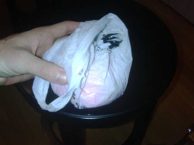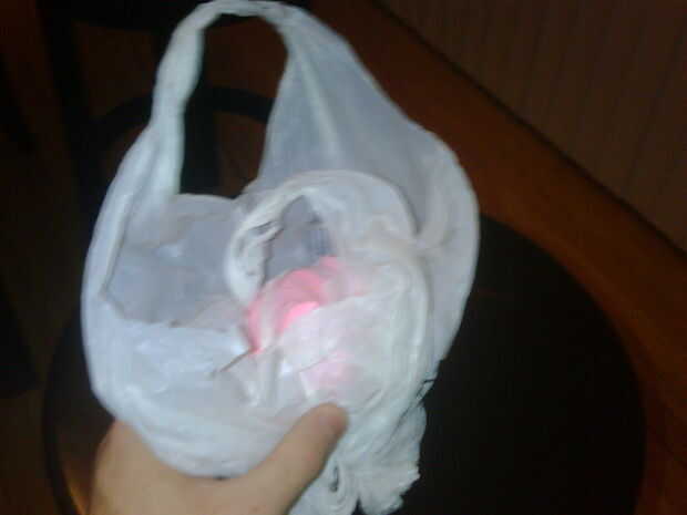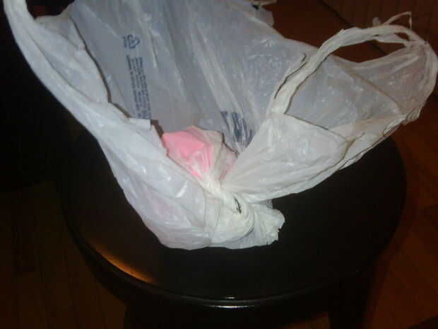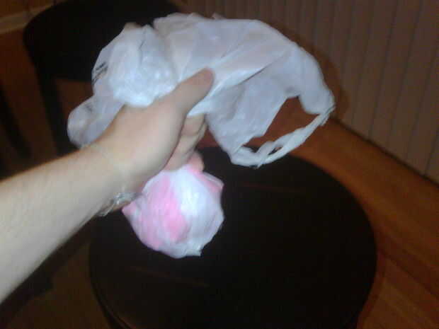 Inserte el papel en la esquina de la bolsa y lo gire dos o tres veces. Lugar entonces el extremo retorcido en la parte superior de la misma bolsa (ver foto 2) Tuck una manija en la bolsa y levante el otro sobre y alrededor de la forma de bola.