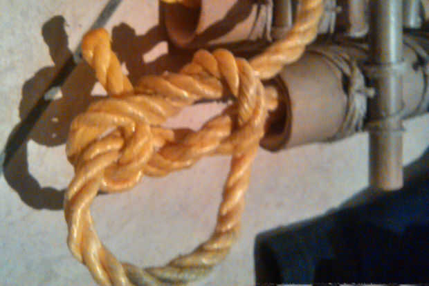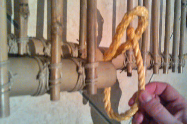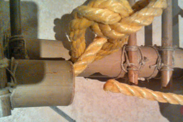 Deslice la otra soga con el palo de bambú de 30cm
