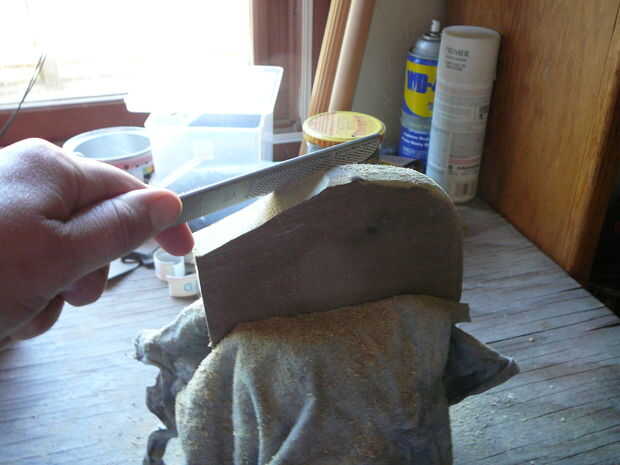 Después de formar con el archivo del curso, utilizar el archivo de madera fino para darle la pierna un aspecto más suave. Por último, use un bloque de lija o papel de lija fino (tamaño de grano 150-240) para terminar la pieza. Prefiero un bloque porque es más fácil de sostener y es más flexible en las curvas y bordes redondos.