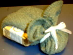 un baño Bunny es un lindo conejito de un paño, alguna cinta o bandas de goma y una barra pequeña de jabón. No solo son decorativas, son convenientes como su toallita y jabón son allí junto (si se puede llevar para tomar al chico poco aparte).