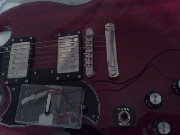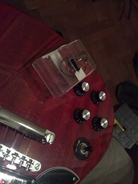 la guitarra es una epiphone sg g400 cherry se descoloró zurdo
