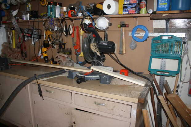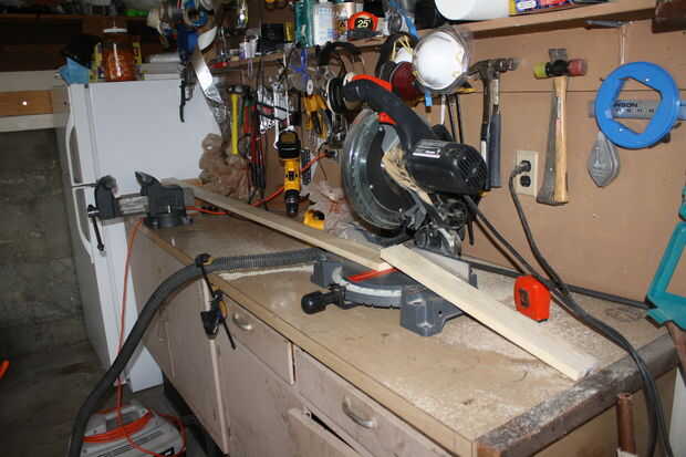 Mide mi colchón, luego corte todos los listones de enrasar a la longitud adecuada con una chuleta de la sierra.
