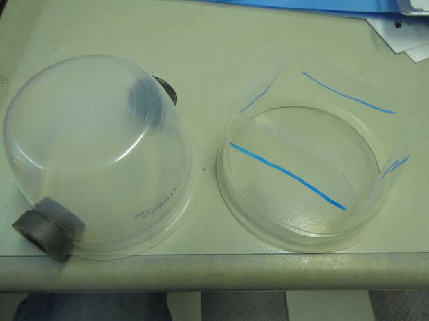 Calentar la base de una de las tinas con la pistola de calor (entre 200 y 300 ° manteniendo distancia para don´t del derretimiento). Cuando la base es suave Mantenga las tijeras y hacer aberturas a través de las aletas del difusor de crear. Lo conveniente es hacer 4 aletas porque los flashes son rectangulares. Aprovechando el calor residual que conserva forma de tarro como queramos del molde.