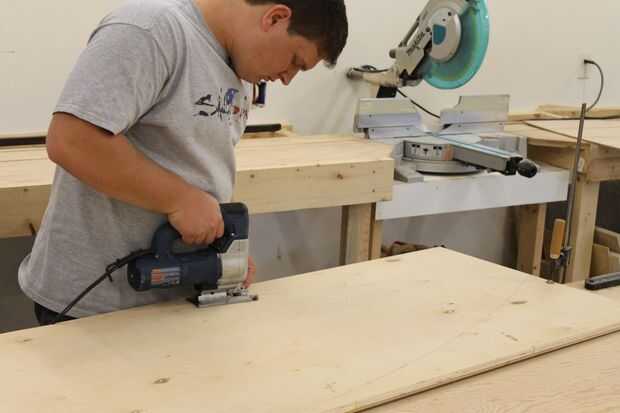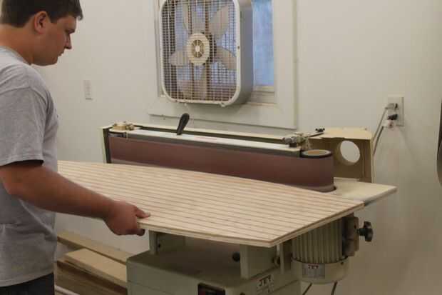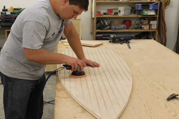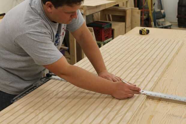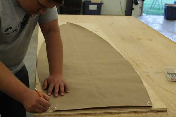 A continuación arrancó mi madera contrachapada de 1/4 de pulgada y 1/2 pulgada hasta 24inches amplia, luego pegué los dos trozos juntos para crear la parte de atrás del barco, seco. Luego marqué en la parte posterior de la plataforma donde quería colocar la estantería porque es más fácil marcar donde quiere la plataforma cuando la pieza esté a escuadra. Lugares del estante son sus propias preferencias, marqué mis estanterías, de inferior a superior, 12", 23 1/2", 35", 46 3/4". A continuación tomar su patrón y alinee que con la pieza que sólo han pegados juntos y trace una línea alrededor del borde del patrón, luego corte el patrón que ha trazado, después de cortar la parte posterior del pedazo hacia fuera lijar los bordes para deshacerse de todas las marcas de sierra. Luego lijar el frente y hacia atrás del panel para no tener que volver atrás y lijar después de poner la estantería en porque es más fácil.