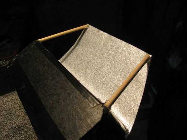 Corté un trozo de chapa que luego pegado a la parte inferior del barco y traído para arriba en un ángulo en la parte delantera. Una vez más usé shish kabob palillos y pegamento caliente para mantener en su lugar. Luego llena los espacios con las placas de espuma de poliestireno cortadas al tamaño correcto. He utilizado silicona para agua apretada la parece.