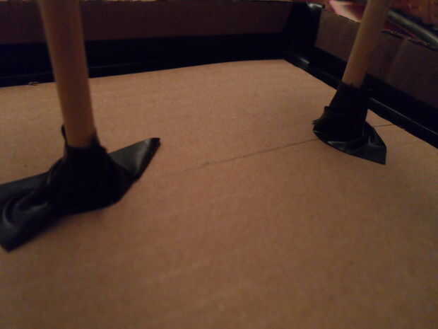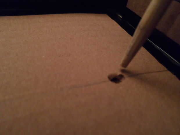 Hágale un agujero cerca de la parte posterior y media directo de la embarcación. Asegurarse de que estén en la línea central. Coloque el mástil con dos velas en la parte posterior y el mástil con una vela en el orificio central. Asegure con cinta.