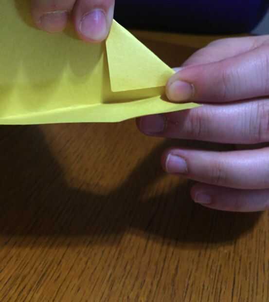 Mirando la figura de sombrero de papel, tomar la esquina superior izquierda del papel rectángulo y doblar hacia el borde de triángulos. Tome la parte posterior izquierda esquina del rectángulo y doblar hacia usted, traslapando las veces anteriores. Repita los mismos pasos para las esquinas del lado derecho.