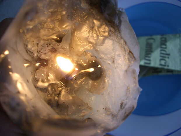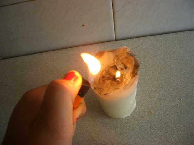 Ahora tienes que encender la vela y hacer la cera caiga en el barco de papel, tienes que extender la cera con el dedo (la cera su tan caliente que espere 2 segundos).