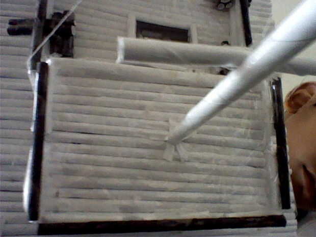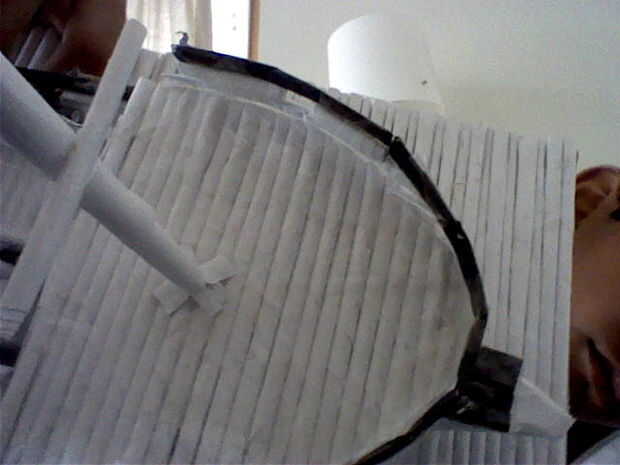 Unir 21 tubos hasta y hacer una forma semi ovalada para el frente Únete hasta 14 tubos para hacer un rectángulo para la parte posterior Únete 36 tubos para hacer la central base con dos orificios en el centro