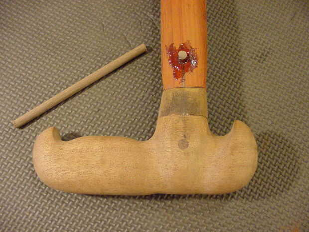 Una vez que los dos agujeros son perforados, medir la 1/4" espiga, añadir 1/8 a cada lado. Pegamento en su lugar y permite establecer 24 hrs.