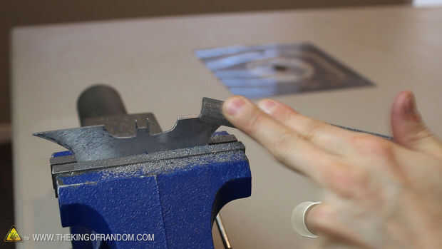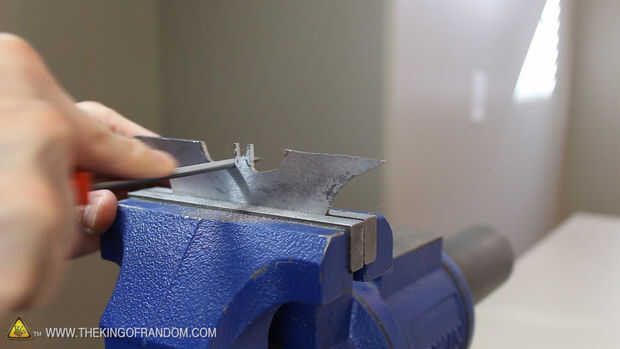 Utilicé mi tornillo de banco para sostener el batarang para aprovechar mejor, y aquí se puede ver sin duda se ve terrible, pero verán mejor en pocos minutos.