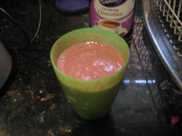 Hoy voy a mostrarle cómo usted puede hacer un batido delicioso!Las cosas que usted necesitará:Una botella deUn refrigerador o congeladorUn pedazo de papel o un embudoLos ingredientes:4/5 de taza de leche3/4 de taza de polvo de capuchino1 cuchara de p