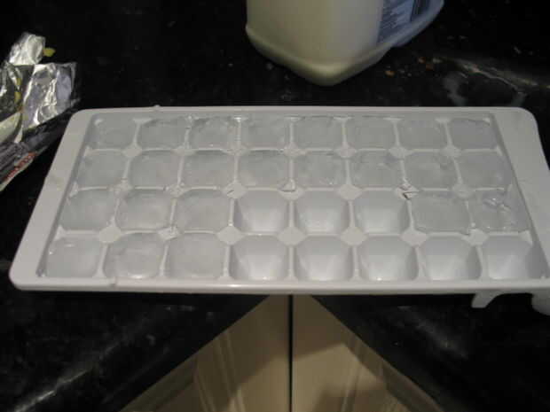 Añadir unos cubitos de hielo en la batidora (esto es por qué usted necesita una licuadora que triture el hielo), unos 3-4 va a hacer.