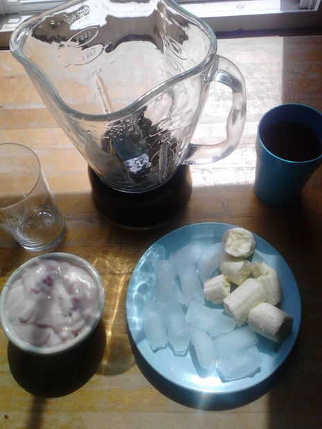 personalizar a su licuado! poner lo que te gusta en él! Prueba diferentes combinaciones. Pero si desea al batido de plátano tropical que tengo... necesitas de estos ingredientes.