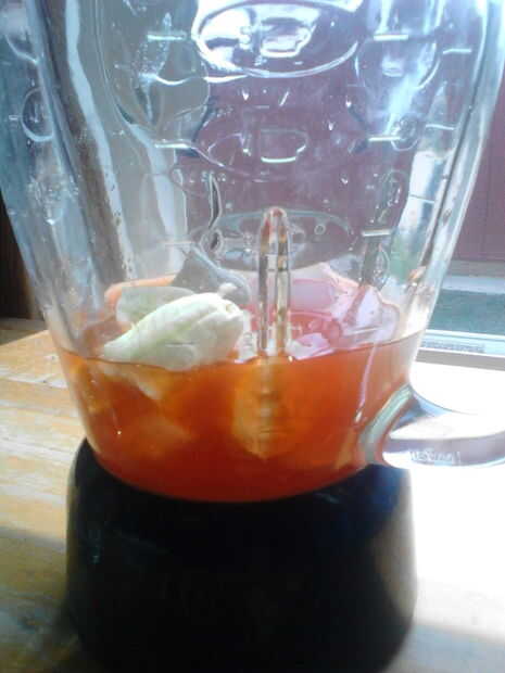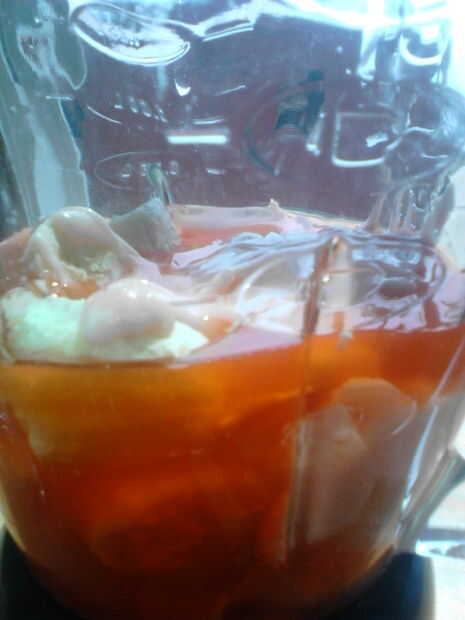 en nombre de mi hermana... Cómo hacer un batido de frutas tropical.Se necesita:ApplePlátanoDuraznosYogur de albaricoqueMezcla y disfruta!