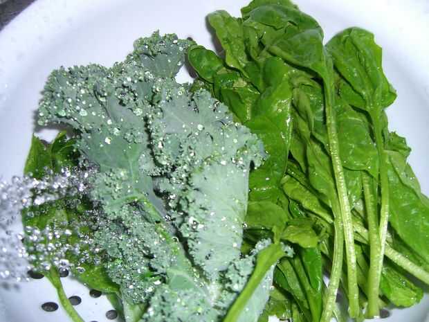 Lavar la espinaca y col rizada.  También lave cualquier fruta fresca que puede ser que necesite.