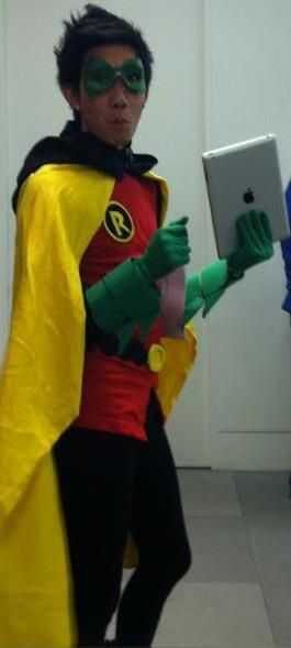 asistí a Austin Comic Con este año como parte de un disfraz de grupo. Fui como Robin. Después de mirar la selección de disfraces online, decidí hacer mi propia.Materiales necesarios:Camiseta verde, de manga corta (mientras las mangas y parte inferior
