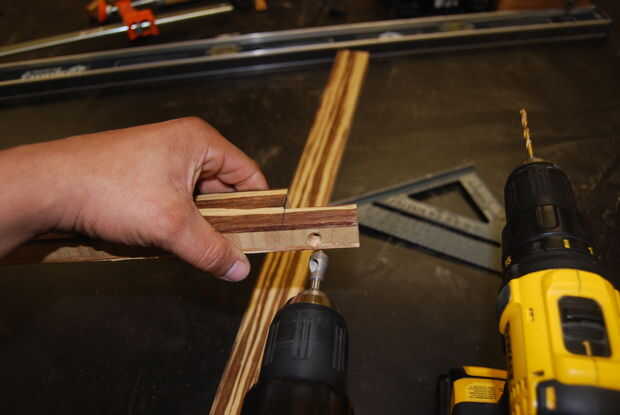 puse las tiras del corte uno a cada lado. Perforado y avellanado-ed y atornillar las patas