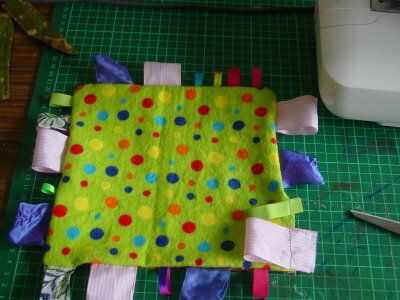1. Gire la tela de la etiqueta la manera correcta hacia fuera. Saque las esquinas para que queden bonitas y puntiagudos. sus cintas deben ahora todo ser hacia el exterior.