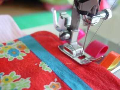 2. Doble el paño adicional formado por el boquete que dejó y cose otra costura encima de la tela de la etiqueta, unos 5 mm del borde. Si desea, puede utilizar una puntada o hilo contrastante.