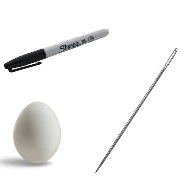 Paso 1: Sopla un huevo hasta Que sopla un huevo es un paso muy importante. Para hacer esto se necesita un huevo, pajita, aguja/Chincheta, y un bowl.you poke agujeros en la parte superior e inferior del huevo y poner una pajita de beber en la parte su