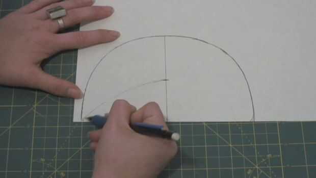 2. en primer lugar, trace una línea vertical desde el centro de la curva, hasta el borde del papel. Luego, mida el ancho del punto más delgado de la llanta utilizando una regla y dibuja el punto medio de la línea.