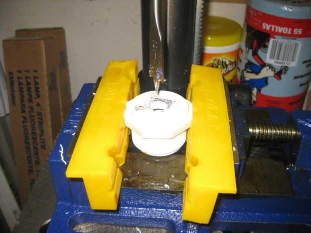 También funciona un taladro de mano regular. Ten en cuenta si usted está usando una mano perforar las tapas tendrán una tendencia a girar de la perforación. necesitarás a algún tipo de abrazadera o vice mantener el enchufe y poco estable.