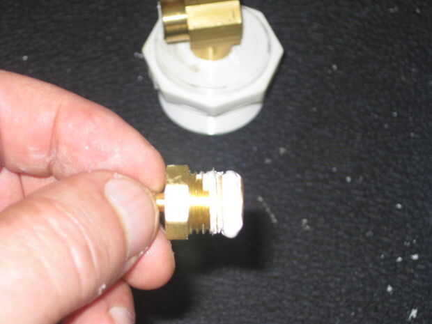 Aplicar una capa de adhesivo en la parte inferior de la mitad del adaptador de la manguera.
