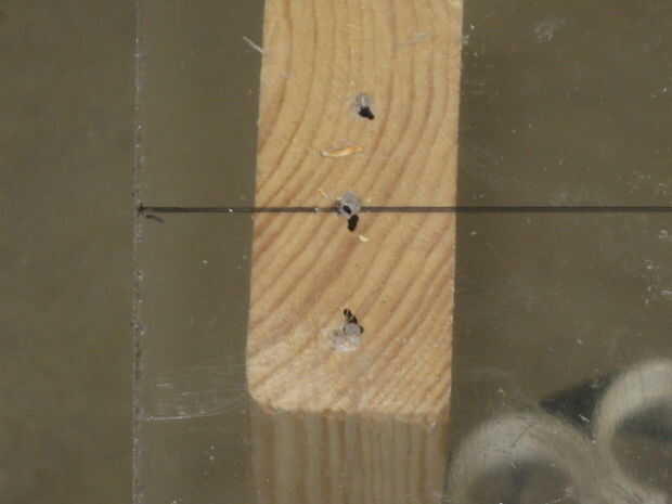 Voltee el plexiglás para que los acopladores son hacia abajo. Marca 3 espaciados uniformemente puntos sobre el plexiglás, directamente donde está centrado el 2 "x 4". Perforar agujeros en el plexiglás, el seguro a los 2 "x 4" s.