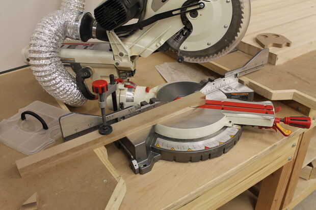 utilizar la Sierra de mesa para hacer cortes de bisel de 45 grados a lo largo de la longitud de los lados.