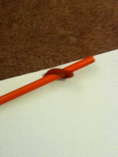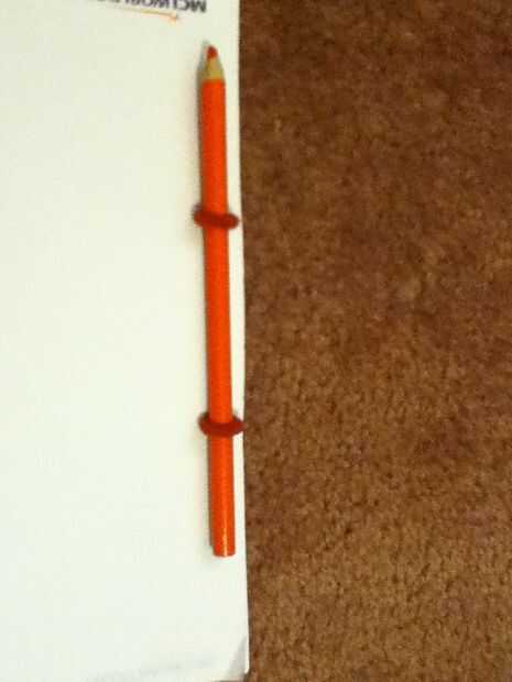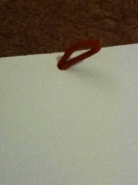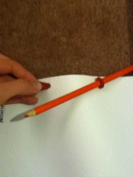 Ahora usted necesita poner su lápiz o palo recto a través del papel. Pegar un extremo si la goma a través de una agujero y ponga el lápiz a través de él. Luego meter el otro extremo a través del segundo agujero y hoyo el lápiz a través de él. La goma debe ser tirada firmemente. Es un poco duro tirar la goma a través pero una vez que se vale!!! Ahora tienes un bloc de dibujo impresionante!!!!!!