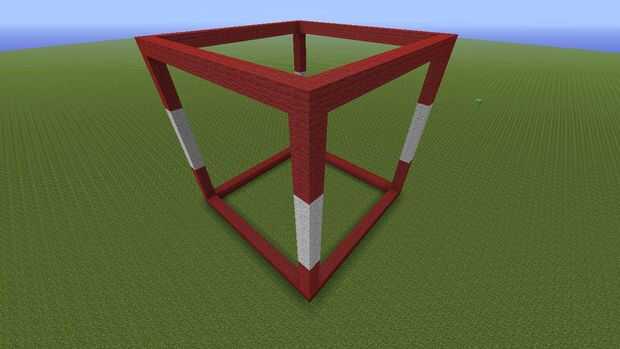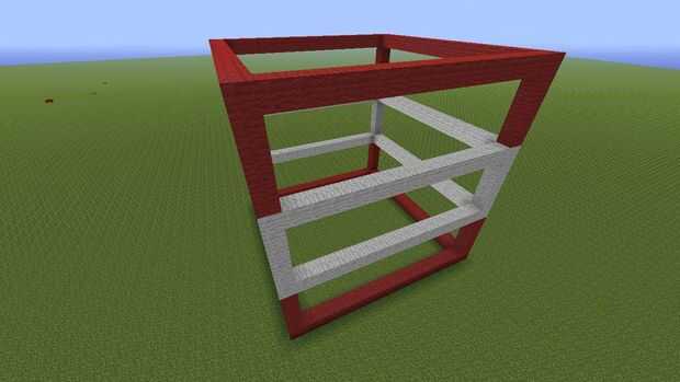 Primero hacer un esqueleto desnudo de él. La base es de 16 X 16 entonces en la pila de las esquinas hasta 5 con rojo y luego 6 en rojo más blanco y después 5. Entonces (siga la tercera imagen) y de la zona blanca con líneas blancas de lana. Acaba como paneles de la parte inferior que será rojo los mediados blancos y un top rojo.