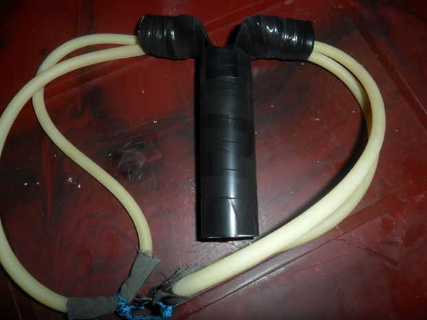 Para terminar, atar las bandas al marco como se muestra y añadir una capa de cinta de aislante se ve.