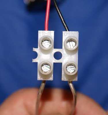 En primer lugar, usted realmente no necesita todos los bloques de terminales de un generador, pues tomar un cuchillo y corta dos del final de una cadena de 12. (Mina era un bloque de terminales de poste de 12). Ahora debe tener un bloque de terminales de 2 polos.