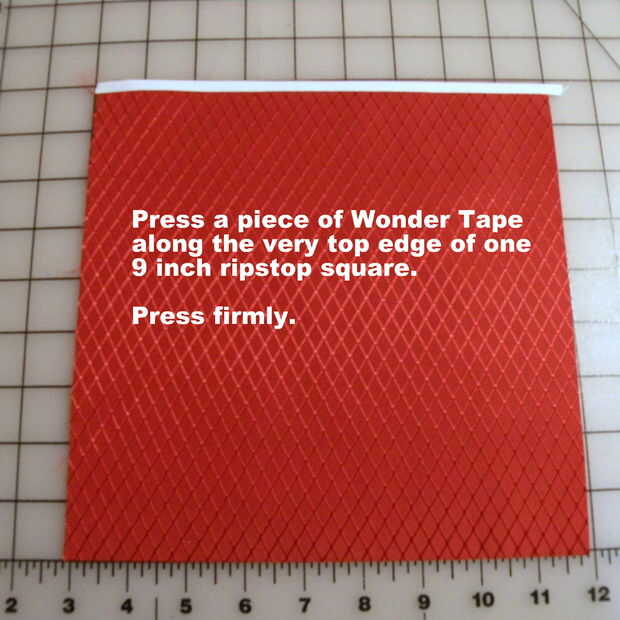 Pulse un trozo de cinta de maravilla en el borde superior de un ripstop de 9 pulgadas cuadrada. Presione firmemente.