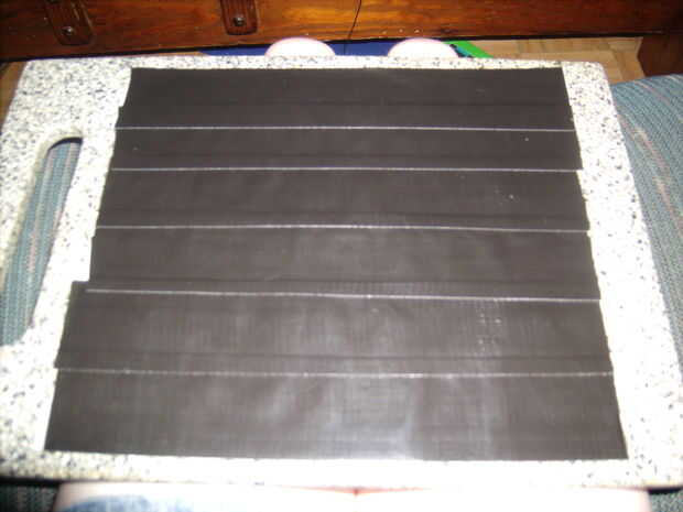 continuar paso 2 hasta que terminas con un 10 pulgadas con lámina de 9 1/2 pulgadas de cinta. recorte el exceso fuera de los bordes pero no demasiado porque cuánto recorte efectos de tamaño de la bolsa.
