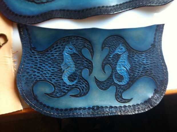 Se debe aplicar un acabado de cuero después de sus tintes de color están todas secos. Resolene Supersheen de Fiebing son buenos comerciales acabados para cuero hacer el cuero colourfast y darle resistencia al agua.