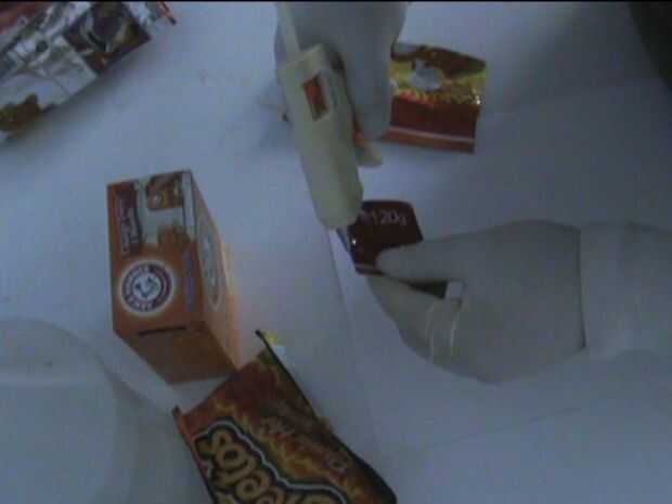 Poner la bolsa dentro de la bolsa de bomba y sello otra vez el borde abierto restante pasado, (utilizar tanto pegamento como sea posible, es muy importante que no hay ningún espacio abierto)