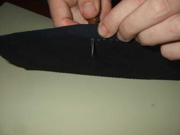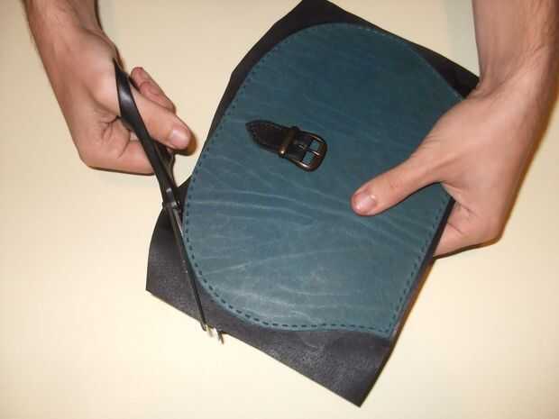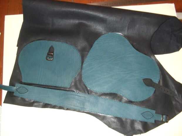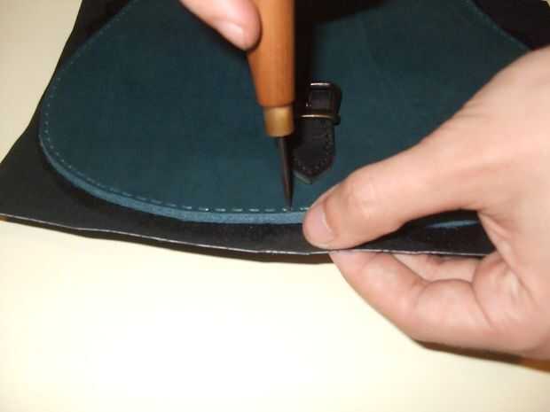 Pegan por el forro a las partes, teniendo cuidado de la superficie lisa. Para eso debo considerar el tiempo de secado del pegamento, porque cuanto más rápido se seca, menos tiempo que tengo para suavizar la piel. Después de secar, golpe la guarnición con un punzón de diamante a lo largo de los agujeros exteriores. Finalmente cortar el excedente de la guarnición de cuero con una tijera.