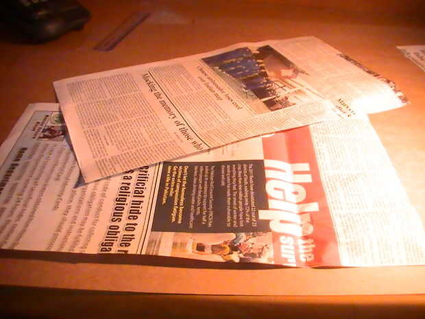 Pegar las dos hojas de periódico con cinta de doble cara o un palillo de pegamento. Esto hará que la bolsa más resistente.