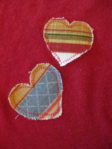 Después de presionar las formas de la tela en su lugar, coser alrededor de los bordes.