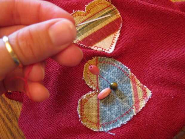 Ahora coser a la tela, esta vez de frente a la parte posterior.