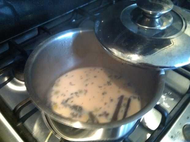 Ahora podemos activar el fuego apagado y agregue 2 cucharaditas de té negro/darjeeling. Dar el té alrededor de 2 minutos con el resto del lote.