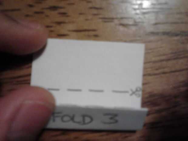 Cortar la parte restante de la tarjeta de índice y asegúrese de que el pegamento está en el borde después de cortar, porque no puede tener cualquier aletas abiertas. Luego, corte las esquinas de la pieza como se muestra en la línea punteada.