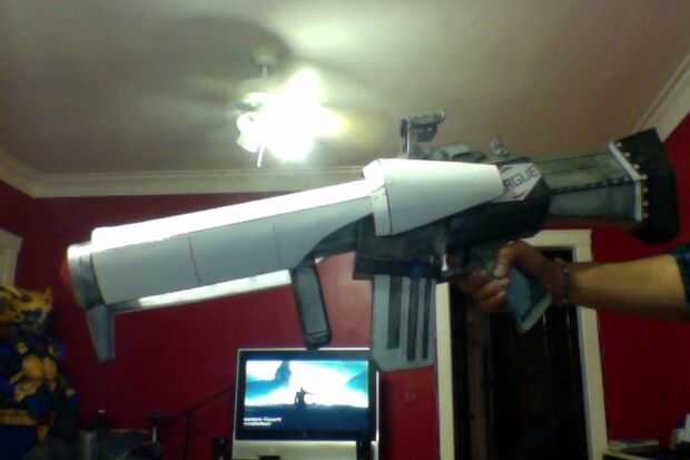 3. hacer una pequeña muesca de cartón regular y pegue todo en su lugar al frente de la pistola.