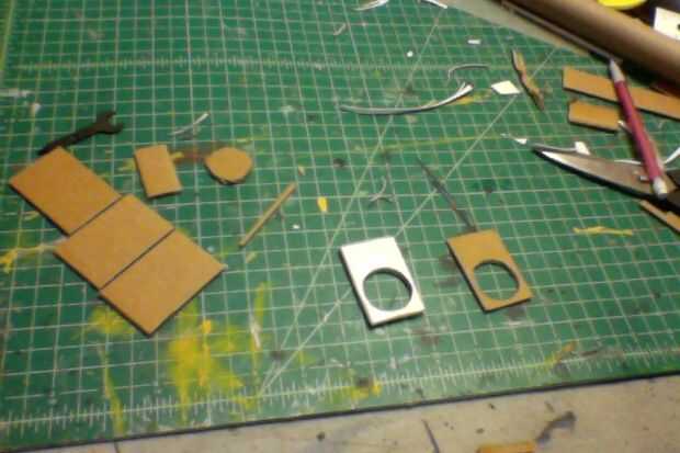 4. para hacer los segmentos poco a lo largo del cañón, cortar un rectángulo y poner un agujero en su interior para que el tubo de cartón se deslice a través. cubren con cartón cómico que bonito y limpio primero.