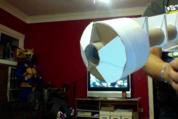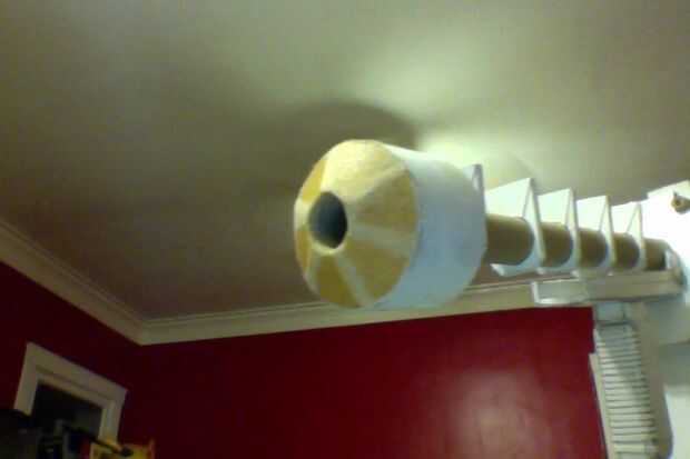 2) corte dos "tapas" que se ajustan en cada extremo. cortar un círculo de ambas tapas del centro es el diámetro del tubo del cañón.